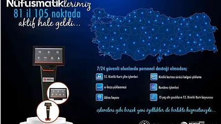 'Nüfusmatikler' ülke genelinde yaygınlaştırılarak, 81 ilde 105 noktada hizmet vermeye başladı.