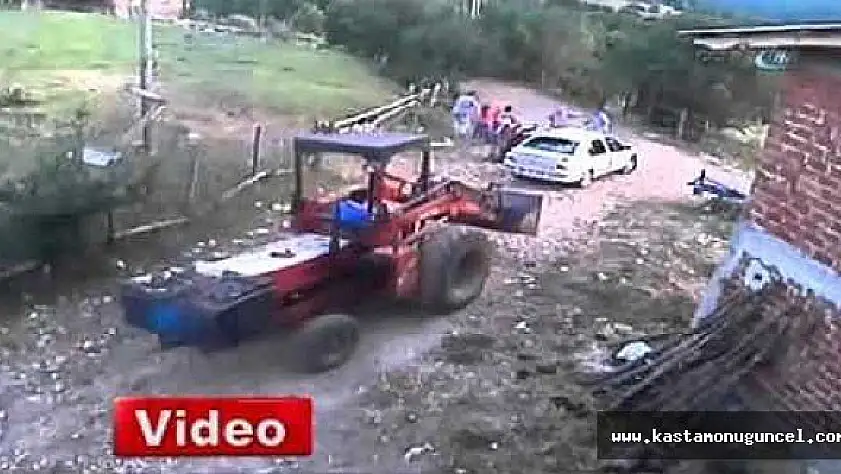 Öte yandan aileler arasında çıkan kavga güvenlik kameralarınca görüntülendi. Görüntülerde aile fertlerinin taş ve sopalarla kavga ettikleri görülüyor. Kavgaya kullandığı iş makinesiyle karışan bir kişinin tarafların arasına araçla dalması ve içerisinde 2 çocuğun bulunduğu belirtilen bir otomobile çarparak bu aracı sürüklemesi de dikkati çekiyor.