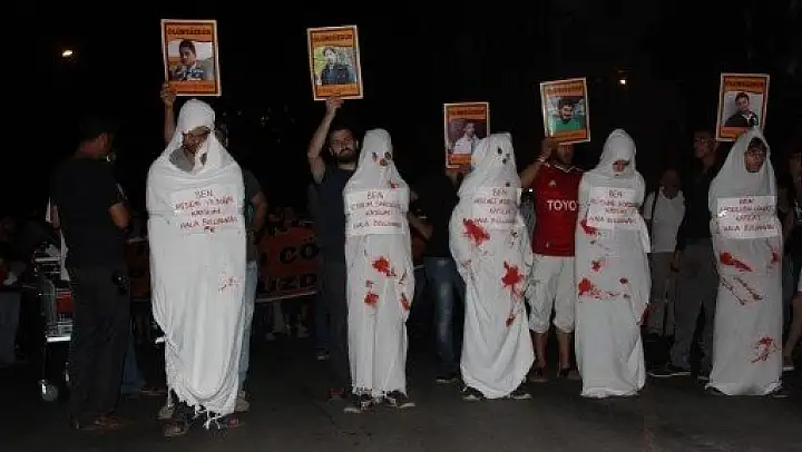 Hatay'ın merkez ilçesi Antakya'da kefen giyen bir grup, 'Gezi Parkı' olaylarında hayatını kaybeden Hataylı Abdullah Cömert ve Ali İsmail Korkmaz'ı andı.