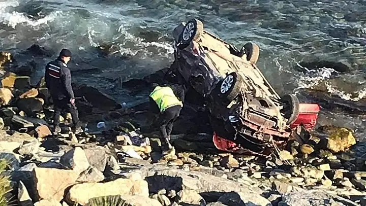 25 metreden deniz kenarına devrildi! 1 ölü, 2 yaralı