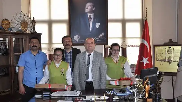 Ziyarette İnebolu Atatürk Ortaokulu Müdür Yardımcısı Mustafa Şentürk, Matematik Öğretmeni Ali Taş ile 8. sınıf öğrencileri Nur Sinem Oğuz ve Aleyna Nil Uzunoğlu hazır bulundu. Başarılı öğrencilere çeşitli ödüller veren Başkan Uzuner, İnebolu'nun adını Türkiye'ye gururla tanıttıkları için öğrencilere teşekkür ederek öğrencilere dizüstü bilgisayar hediye etti. Başkan Uzuner, 'MEB ile TÜBİTAK işbirliğinde gerçekleştirilen yarışmada 'Döndürmeden Alan Hesaplama' adlı matematik projesi ile İnebolu Atatürk Ortaokulumuzun proje ekibi, Türkiye birinciliği kazanarak büyük bir başarıya imza atmışlardır. Öncelikle emeği geçen Atatürk Ortaokulu İdarecilerine, Proje Ekibi Rehber-Matematik Öğretmeni Ali Taş'a ve öğrencilerimize bir kez daha teşekkür ediyorum' dedi.
