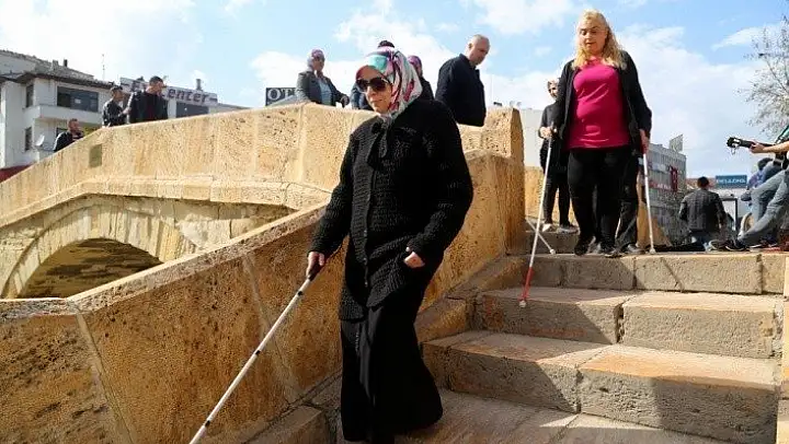 Kastamonu'da düzenlenen kursta, görme engellilere sokakta yardım almadan rahatça hareket edebilmelerinin püf noktaları öğretiliyor.