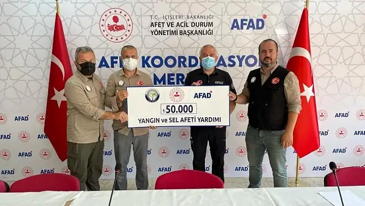 Bozkurt'ta selin oluşturduğu hasarın giderilmesi için çalışmalar hızla devam ediyor. Bir yandan kayıp olan vatandaşların aranmasının sürdüğü ilçede kamu kurumları, STK'lar ve gönüllülerin desteği ile enkaz kaldırma çalışmaları da devam ediyor. Bölgede selin izlerinin hızla silinmesine destek olmak isteyen yardımseverler ve gurbetçi vatandaşlar ise yardımlarını bölgeye ulaştırıyor. Bu kapsamda Tut Elimi Derneği Türkiye Temsilciliği tarafından afet bölgesindeki çalışmalarda kullanılmak üzere 50 bin TL'lik yardım, derneğin Türkiye temsilcisi Selman Çeliktaş, gönüllüler Turgut Tunç ve Fahrettin Çolak tarafından Bozkurt Afet Koordinasyon Merkezinde AFAD Başkan Yardımcısı İsmail Palakoğlu'na teslim edildi.
