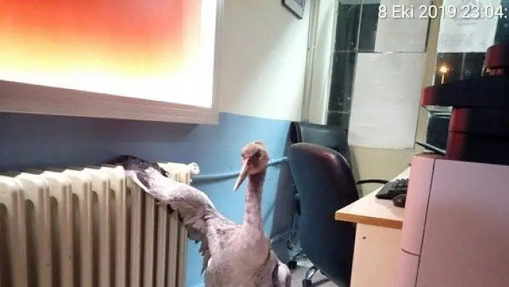 Kastamonu Çatalzeytin ilçesinde yaralı halde bulunan turna İlçe Emniyet Amirliğine sığındı.