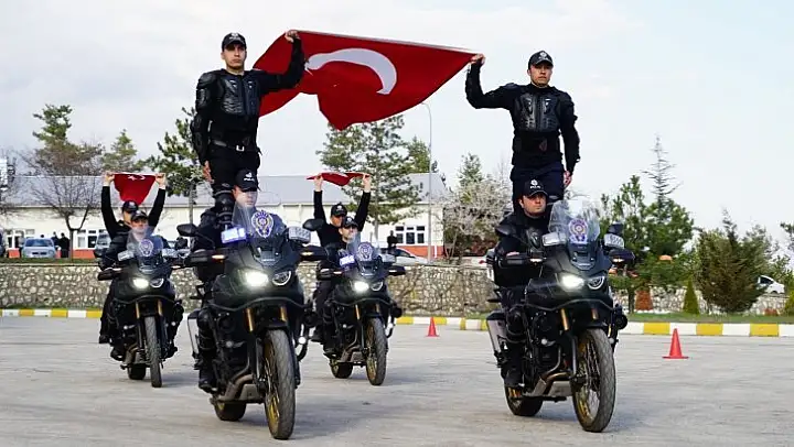 Kastamonu'da eğitimleri tamamlanarak sertifikaları teslim edilen motosikletli yunus polis timleri, görevlerine Türk bayraklı şov ile başladı.