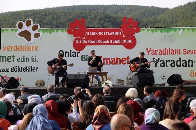 Kastamonu Belediyesi ve özel bir dil kursu tarafından organize edilen konsere katılan vatandaşların bir bölümü de köpek ve kedi maması getirdi.