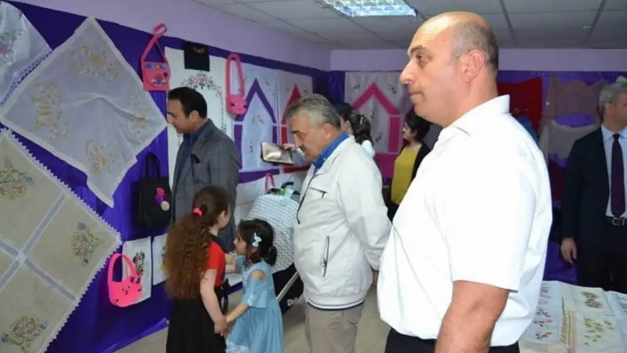 Halk Eğitimi Merkezi Salonunda açılışı yapılan sergide, mesleki ve el sanatları kurslarında yıl boyunca üretilen eserler beğeniye sunuldu.