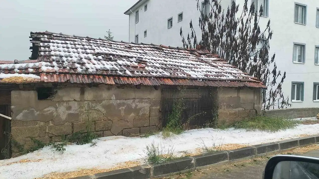 Fındık büyüklüğünde yağan dolunun ardından ilçede sağanak yağışta etkili oldu.