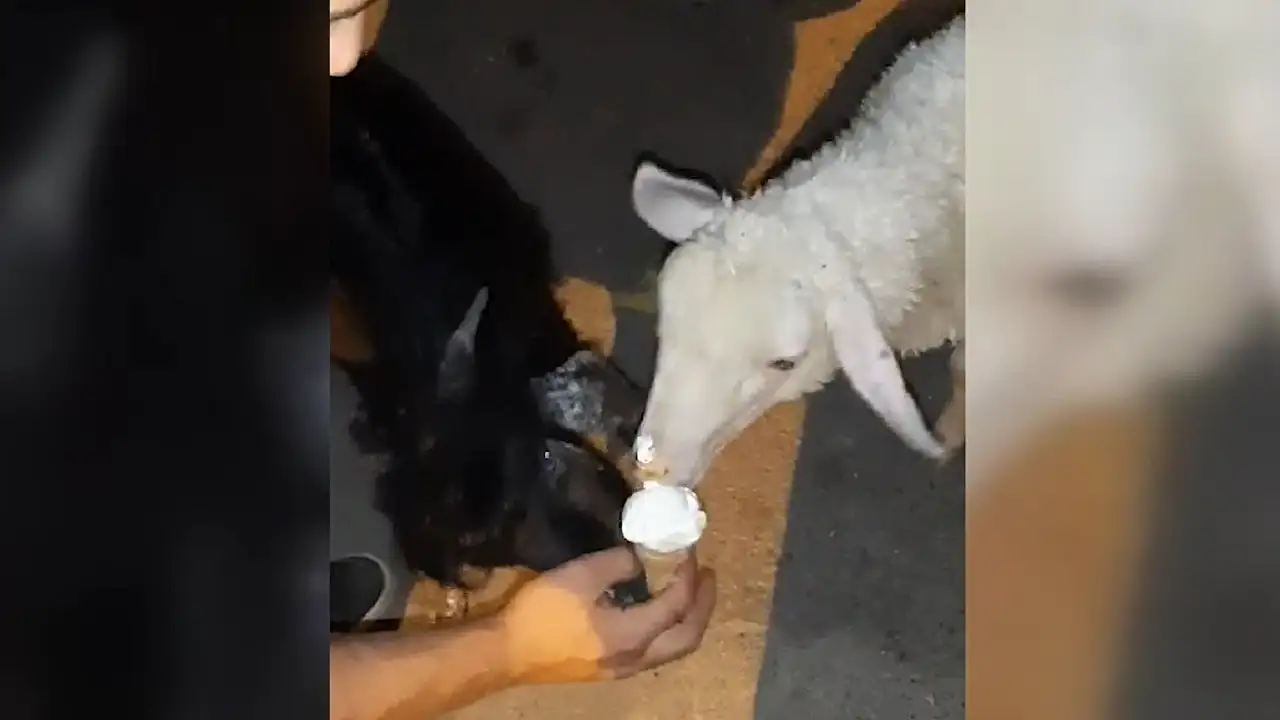 Karabük'te bir kişinin dondurmasını kuzu ve keçiyle paylaştığı anlar cep telefonuyla kaydedildi.#karabuk #keci #kuzu #dondurma pic.twitter.com/meWvEURA9U— Kastamonu Güncel (@kastamonugncl) August 28, 2023