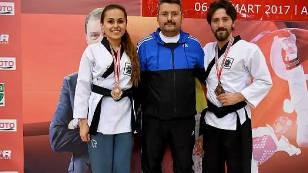 10-12 Kasım 2017 tarihleri arasında Edirne'de yapılan 19. Balkan Taekwondo Şampiyonasında Tuğba Şengül, antrenörü Murat Şengül ile birlikte (Maç öncesi)