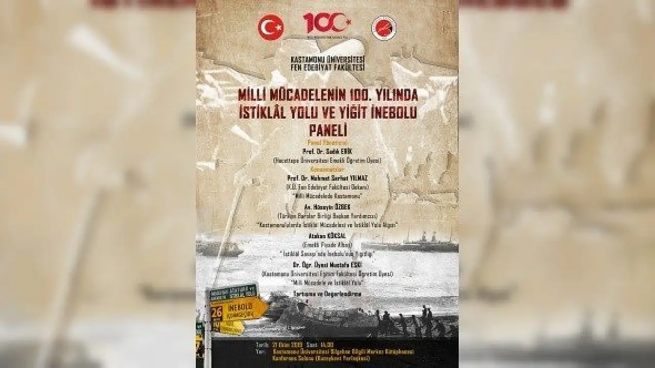 Kastamonu Üniversitesi Fen Edebiyat Fakültesi Dekanlığı tarafından "Milli Mücadelenin 100. Yılında İstiklal Yolu ve Yiğit İnebolu Paneli" düzenleniyor.
