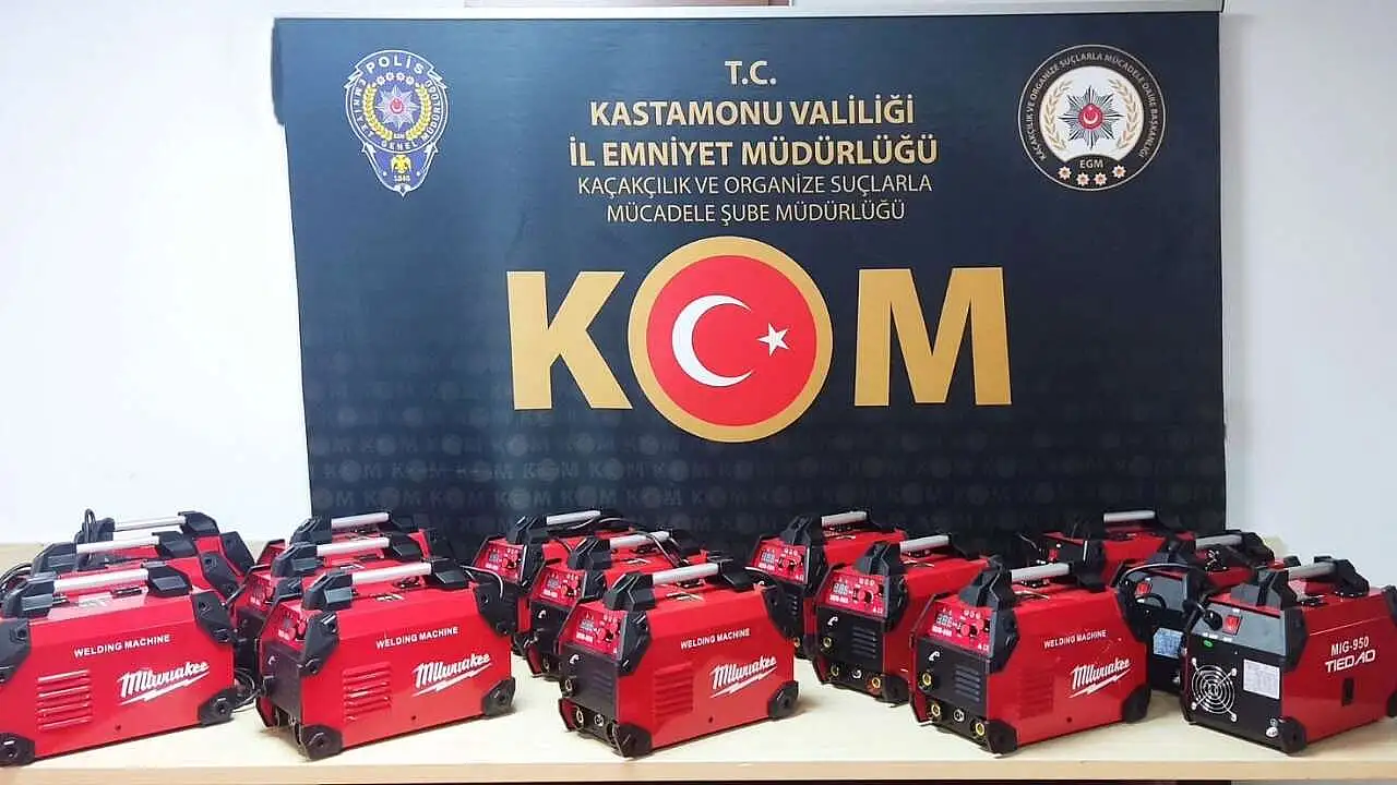 Kastamonu İl Emniyet Müdürlüğü Kaçakçılık ve Organize Suçlarla Mücadele (KOM) Şube Müdürlüğü ekiplerince yapılan operasyonda, 15 adet kaçak olduğu değerlendirilen kaynak makinesi, 45 adet kablo, 15 adet alüminyum folyo içerisinde kaynak teli, 15 adet kaynak siperliği, 15 adet kaynak camı ve 15 adet kaynak temizleme fırçası ele geçirildi.