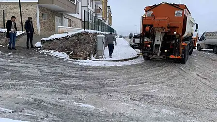 Şehrin yüksek kesimlerinde etkili olan kar yağışının hayatı olumsuz etkilememesi adına gece itibariyle çalışmalara başlayan belediye ekipleri, buzlanmaya karşı yollarda ve kaldırımlarda tuzlama işlemini sürdürüyor.