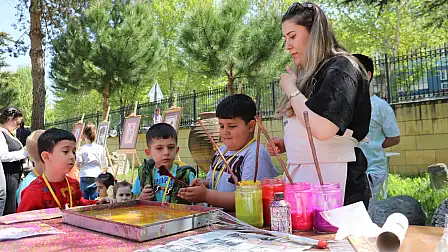 Kastamonu'da ilkokul öğrencileri, "18 Mayıs Uluslararası Müzeler Günü" kapsamında müze bahçesinde atölye çalışması gerçekleştirdi.