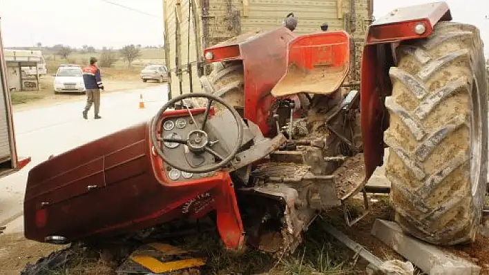 OTOMOBİLİN ÇARPTIĞI TRAKTÖR İKİYE BÖLÜNDÜ