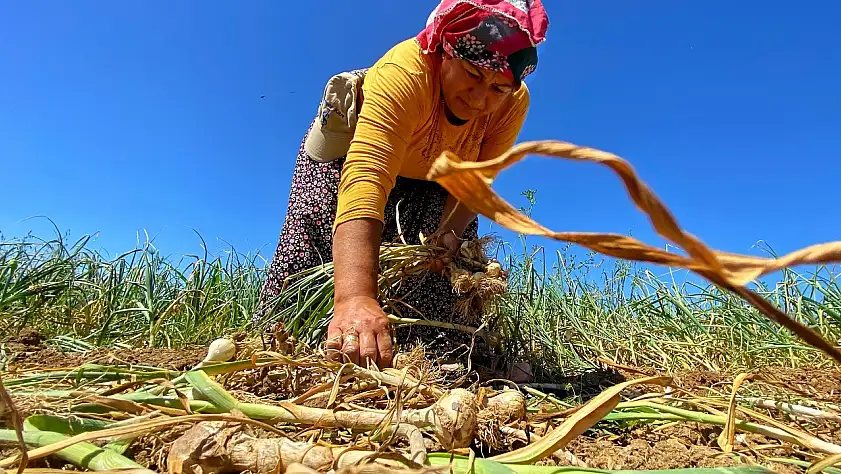 İlçeye bağlı Akdoğan köyünde sarımsak hasadı yapan Cemal Tuncel, sarımsağın bölge açısından çok önemli bir ürün olduğunu söyledi.