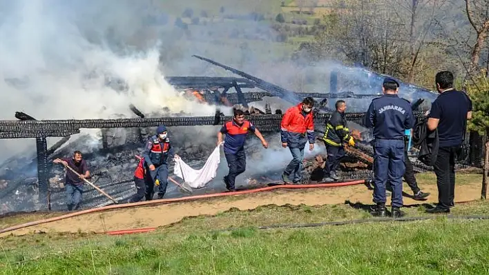 Kastamonu'nun Taşköprü ilçesinde piknik tüpünün patlaması sonucu bir evde çıkan yangında hayatını kaybeden Hamdi Demir'in cenazesi enkazdan çıkartıldı.